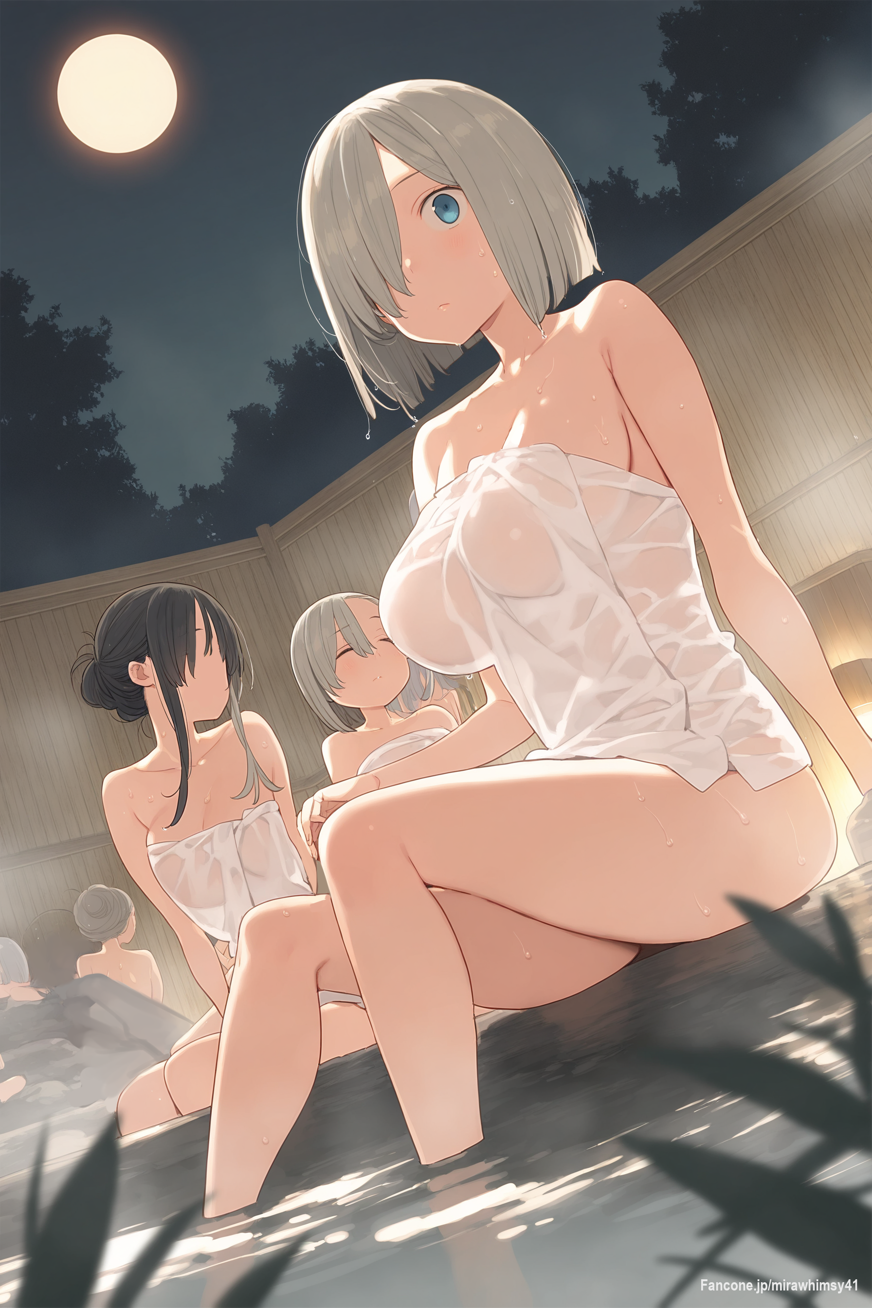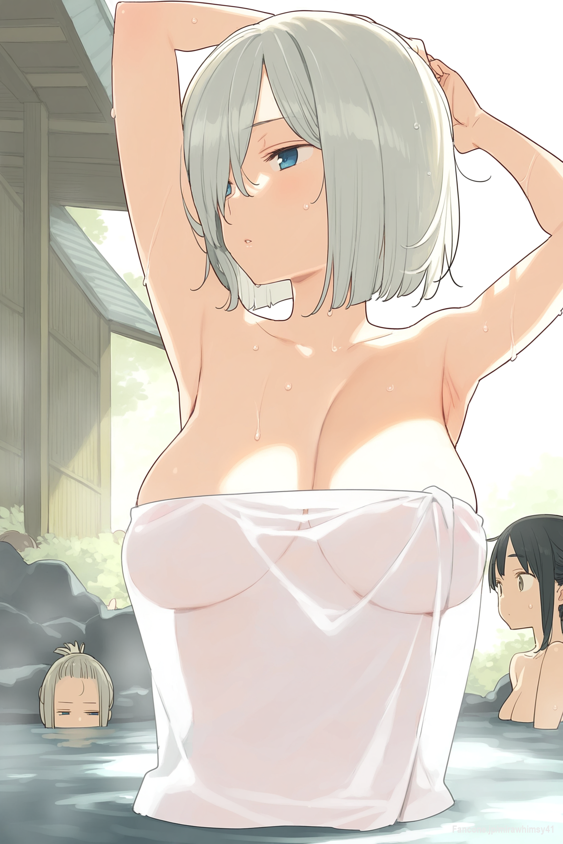 肌と湯気が溶け合い、温泉のほとりで美しいボディラインが余すことなく描かれる18+専用のスペシャルシーン。